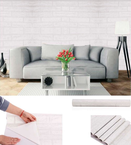Papel Vinilo Adhesivo De 45 cm x 10 mts Ladrillo Blanco