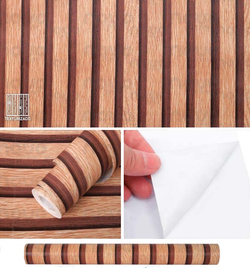 Papel Vinilo Adhesivo De 45 cm x 10 mts Liston Madera