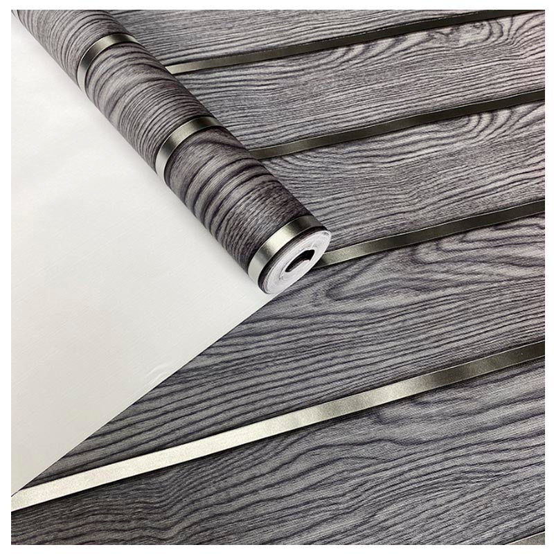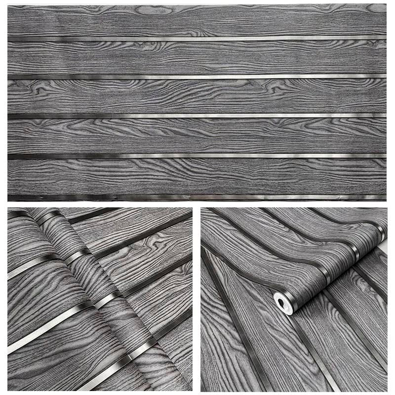 Papel Vinilo Adhesivo De 45 cm x 10 mts Liston Tipo Madera Plateado