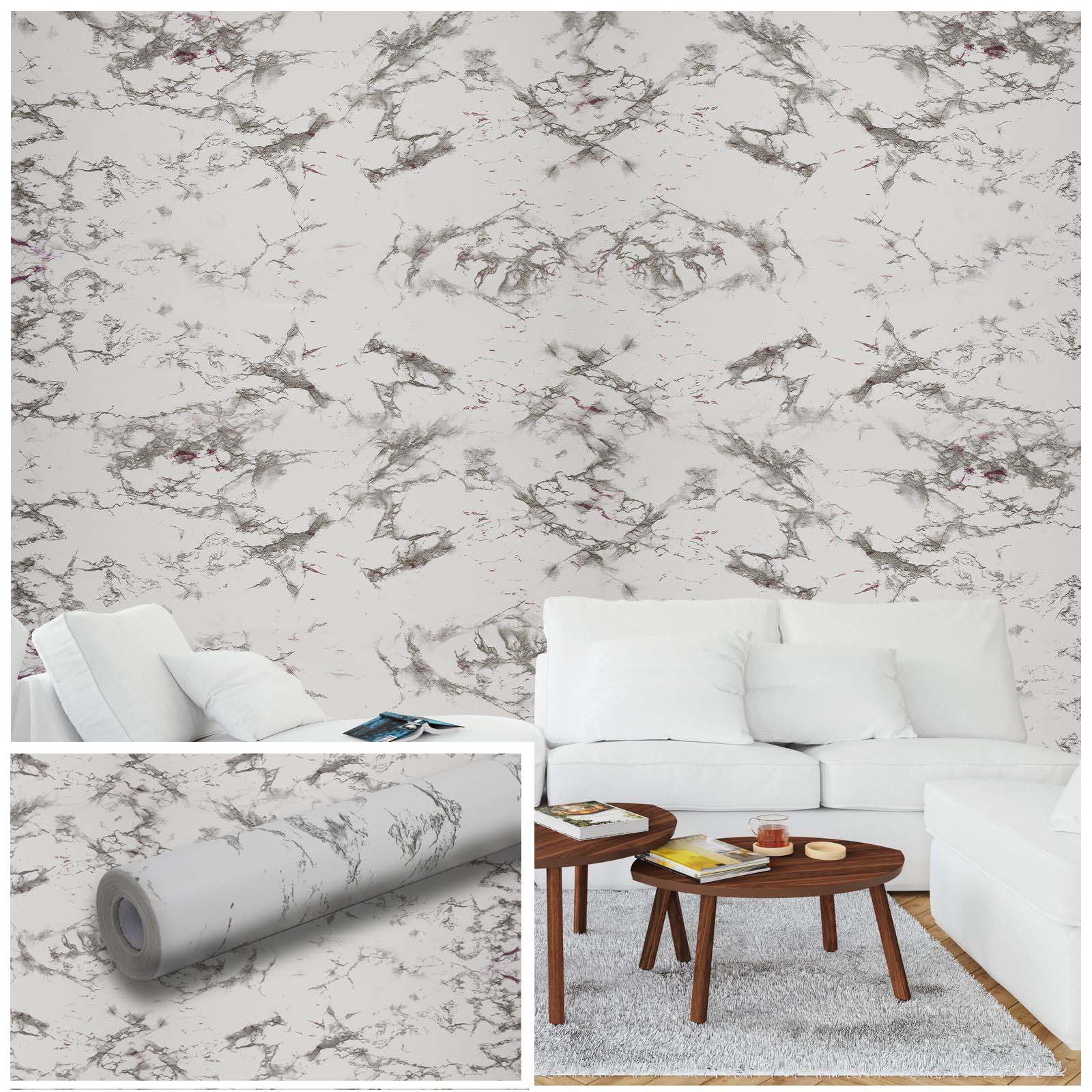 Papel Vinilo Adhesivo De 45 cm x 10 mts Mármol Blanco Mate