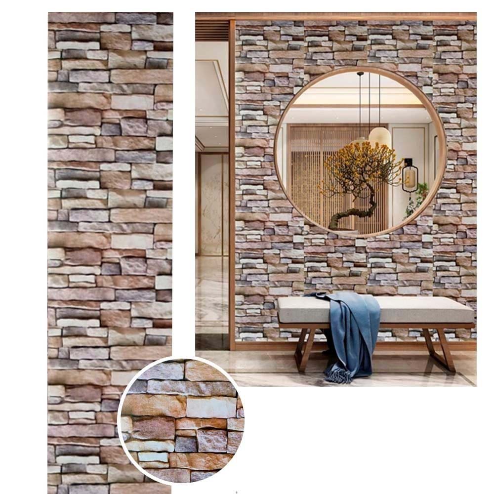 Papel Vinilo Adhesivo De 45 cm x 10 mts Piedra Rustico Marron
