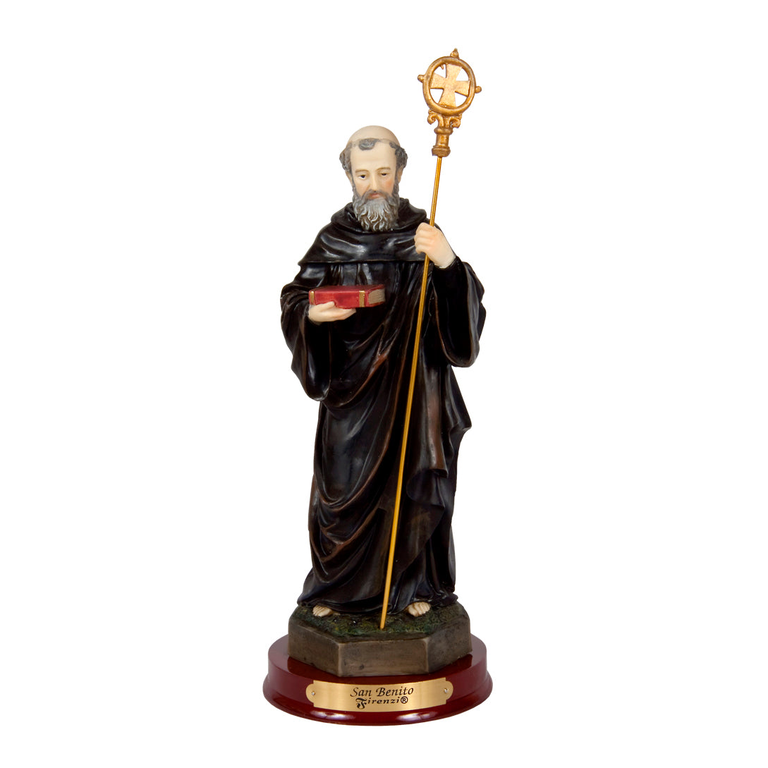 Esta imponente figura de San Benito es un símbolo de protección espiritual y fe inquebrantable. Con un diseño detallado y acabados de alta calidad, representa al santo portando la Santa Cruz y el libro de las Sagradas Escrituras, recordándonos su legado de oración y defensa contra el mal.